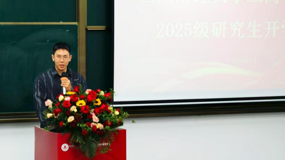 陈刚教授作为教师代表发言。他强调,研究生阶段应聚焦前沿领域的探索与创新,主动追踪学科动态,构建系统性学术视野,潜心钻研是学术创新的基础,希望大家从理论积淀到技术前沿,在攻关中锤炼思维,在实证中拓展认知,努力在专业深度、学术敏锐性、科研韧性和创新意识等方面实现突破。