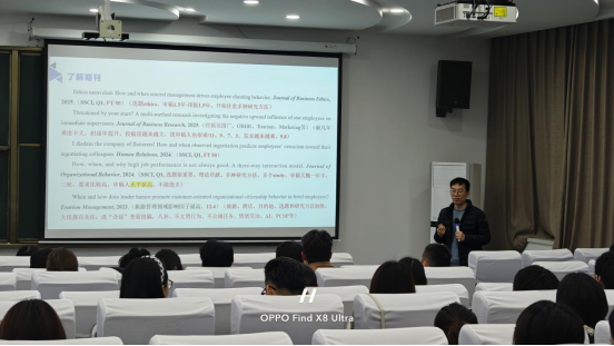 本次讲座,程豹教授依托其深厚的科研积淀与多年沉淀的实战经验,通过一系列鲜活且富有启发性的案例剖析,为在场师生在组织管理研究的理论探索与前沿实践、学术论文的规范撰写与高效发表等方面,提供了极具实操价值的指导建议。此次讲座不仅为学院师生开展科研工作提供了有力支撑,更为促进学术能力的全面提升与长远发展注入了强劲动能。