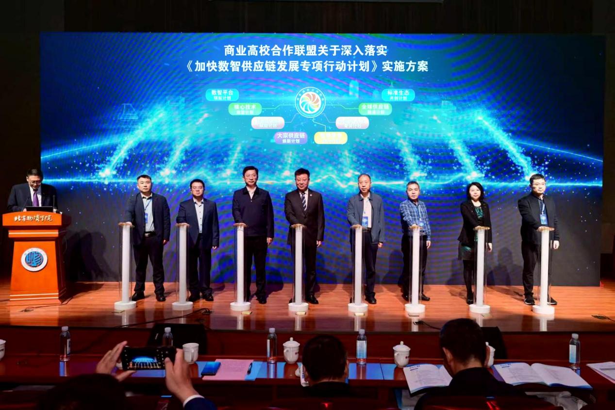 在成果发布环节,商业高校合作联盟各院校领导代表共同见证了《关于深入落实<加快数智供应链发展专项行动计划>实施方案》的发布。