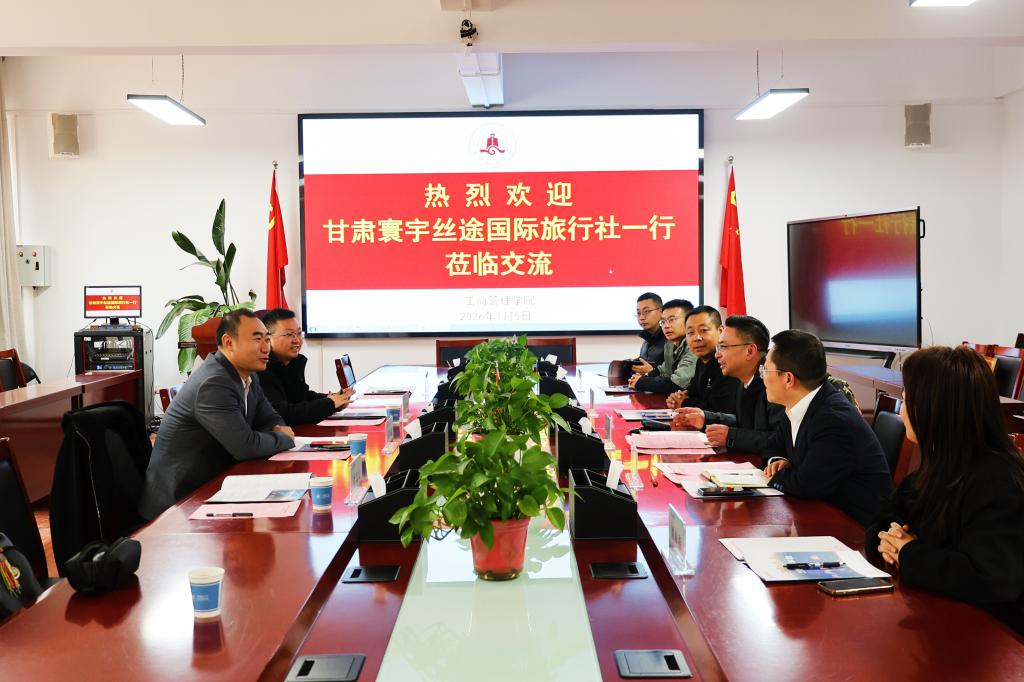 学院党委书记对甘肃省旅行社协会、甘肃寰宇丝途国际旅行社一行的到访表示诚挚欢迎,并介绍了学院基本情况和近年来在服务地方文旅产业发展方面做出的努力。